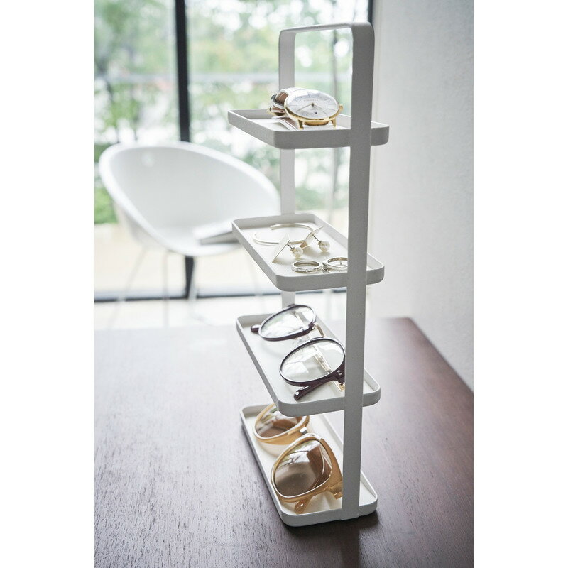 <仕様>◆サイズ:約W16.5xD7xH32.5cm◆重量:約370g◆トレー内寸:約15.5xD6.5cm◆棚と棚の距離:約7.5cm◆耐荷重:各棚約500g◆品質表示:本体/スチール(粉体塗装)、マット/シリコーンリビングの棚や玄関棚に、普段使う眼鏡やアクセサリー、鍵類などをまとめて収納できる4段トレー。